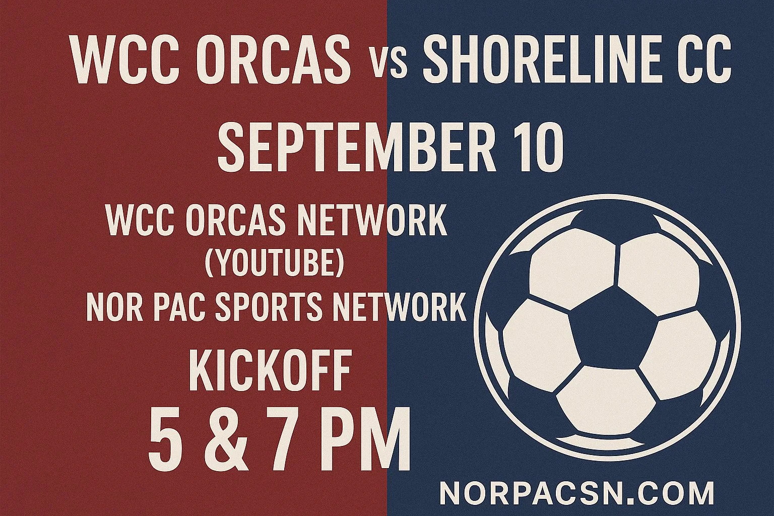 Catch live coverage of Whatcom Community College men’s and women’s soccer on Sept. 10 with 5 p.m. and 7 p.m. kickoffs. Watch the doubleheader on the WCC Orcas Network YouTube channel or stream at norpacsn.com via the Nor Pac Sports Network.
