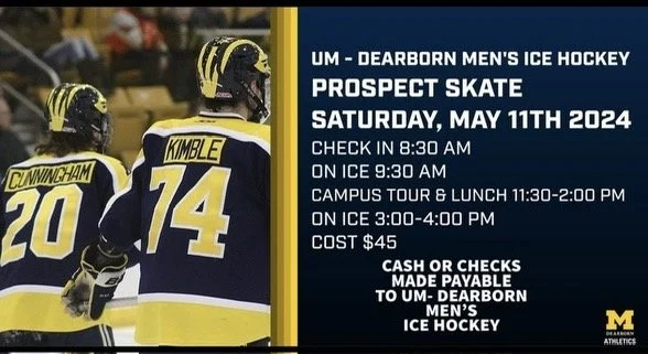 On May 11th, UM-Dearborn will hold a prospects skate for anyone looking for an opportunity at the college level. UM-Dearborn plays at the Division I level of the American Collegiate Hockey Association (ACHA).